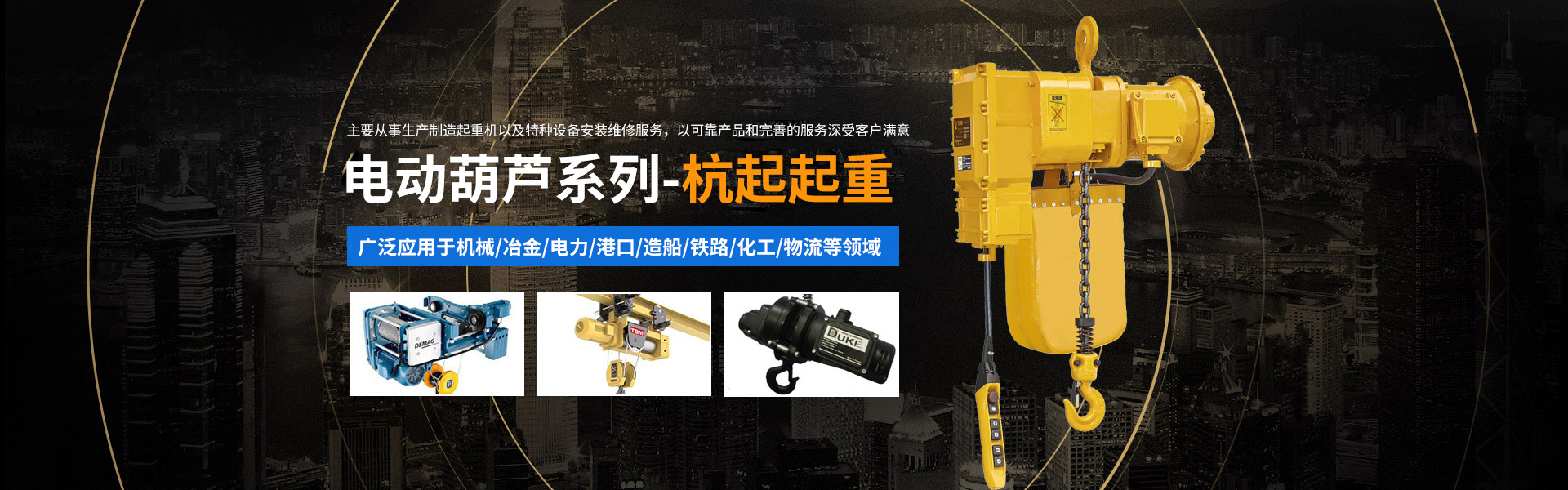 產(chǎn)品中心主要經(jīng)營門式起重機(jī)、橋式起重機(jī)、電動葫蘆、懸臂吊、升降平臺、起重機(jī)配件的研發(fā)、銷售、安裝和維修。